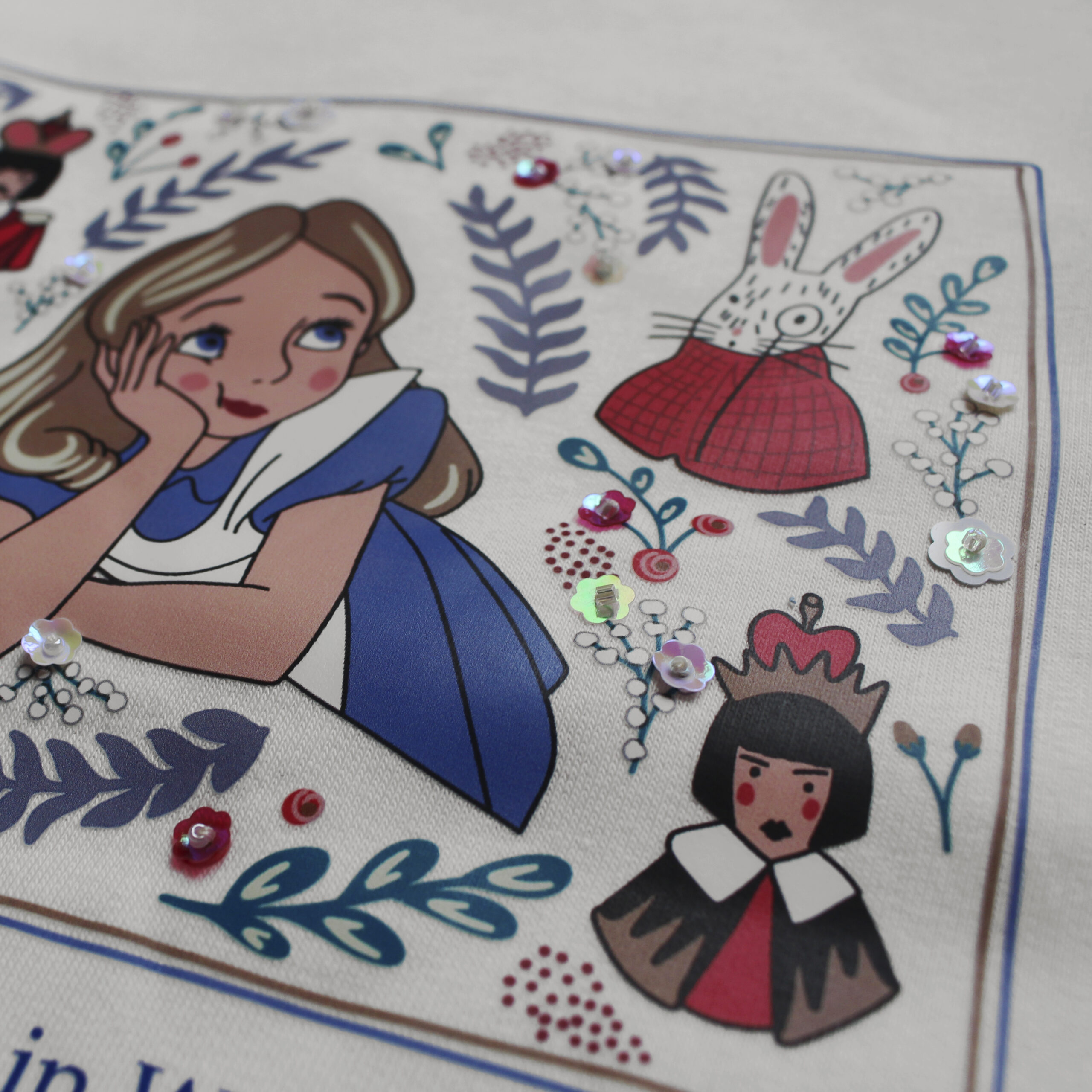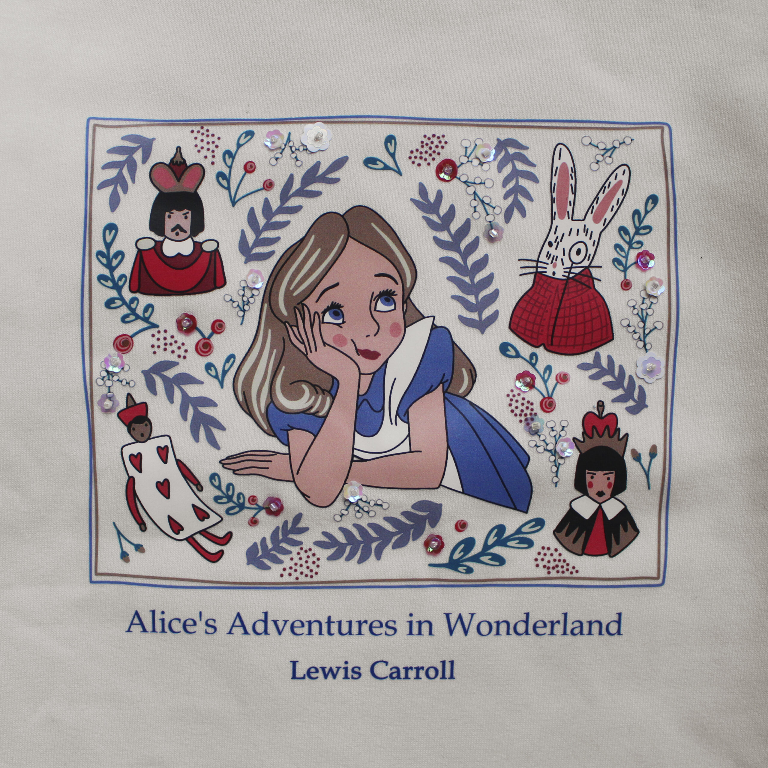 Buzo de frisa color natural estampado, con detalles bordados a mano.
