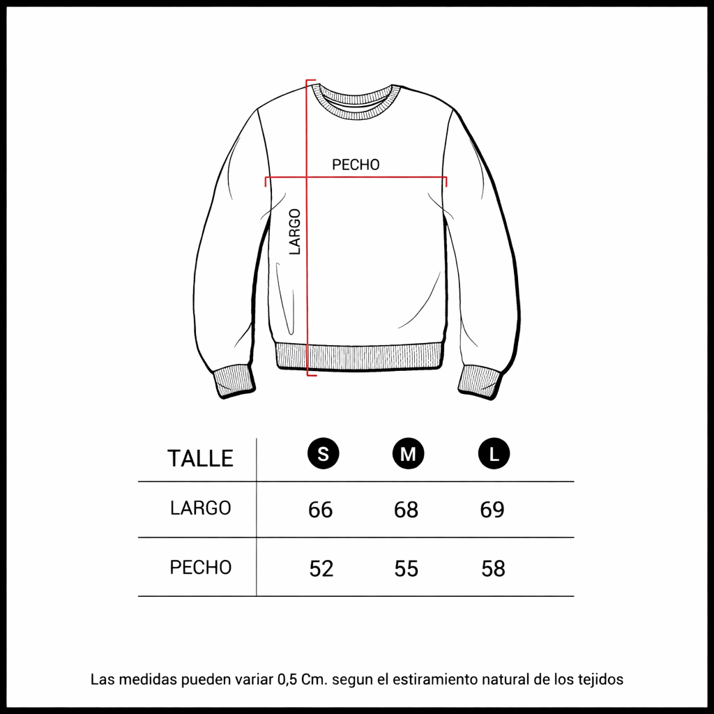 Buzo de frisa color negro estampado. Desliza las imágenes para ver la tabla de talles!